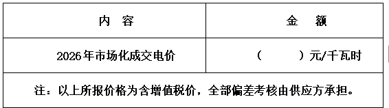 报价单填写说明:供应商须在“2026年度长协交易均价固定不变”的前提下,填报所能承受的下降金额。填“0”表示不降价,按2026年度长协交易均价投报;填“0.020”表示在2026年度长协交易均价的基础上下降2分(人民币)。报价保留至小数点后5位。