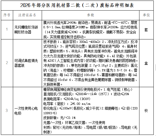 宿迁市中医院现就本次2026年部分医用耗材第二批(二次)采购项目中部分品种废标结果公布如下: