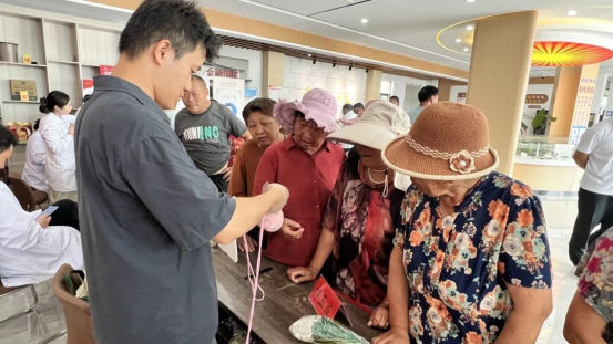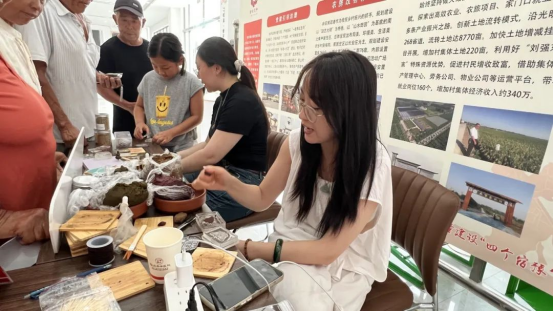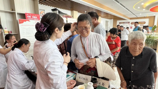 南京中医药大学药学院学子们化身“文化使者”,设置特色体验区:村民在指导下亲手制作中药香囊、合香牌,学习辨识中药材;护理部工作人员现场演示耳穴贴敷、中药茶饮调配,将中医养生智慧融入互动体验。