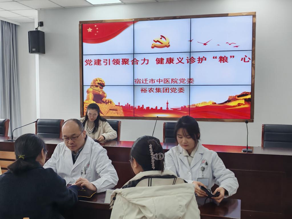 11月20日上午,宿迁市中医院走进宿迁市裕农农业发展集团有限公司开展“党建引领聚合力 健康义诊护‘粮’心”主题党日。活动中,宿迁市中医院医护人员开展了血压测量、中医健康咨询、中医适宜技术推广等服务。