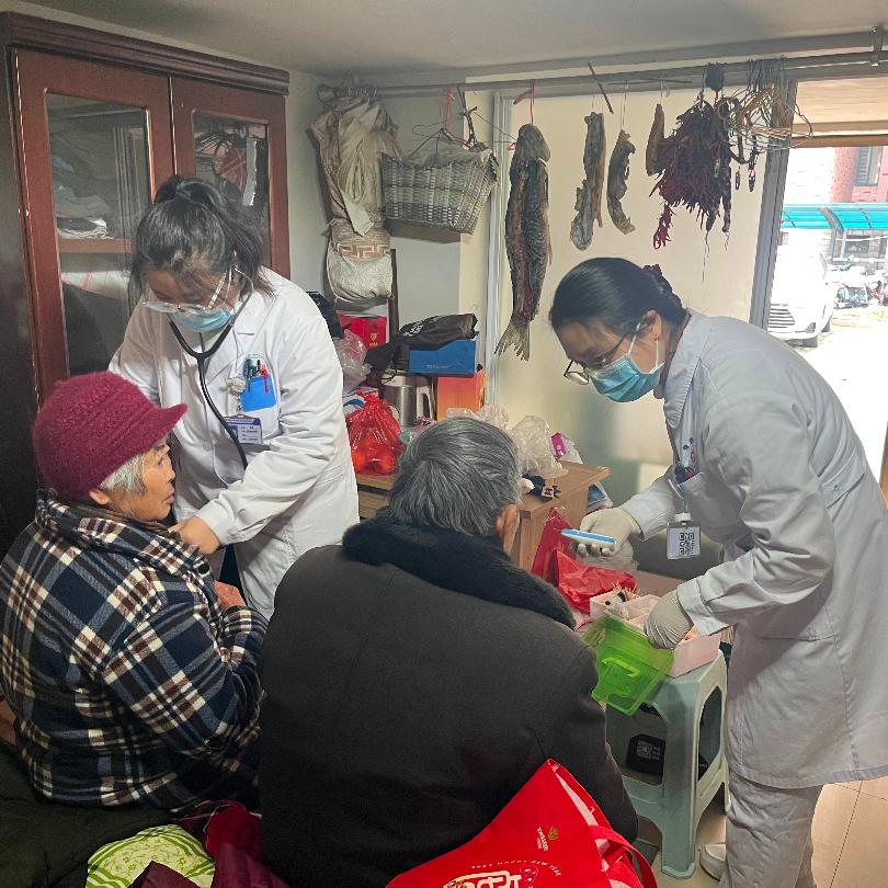 志愿者团队心系小区中的困难群体及出行不便的居民,积极开展入户义诊活动,传递健康关怀。他们为居民提供血压和血糖测量服务,并根据不同病症及个体差异,提供专业的治疗建议和个性化的用药指导。