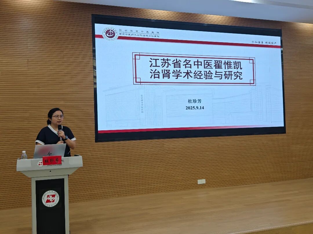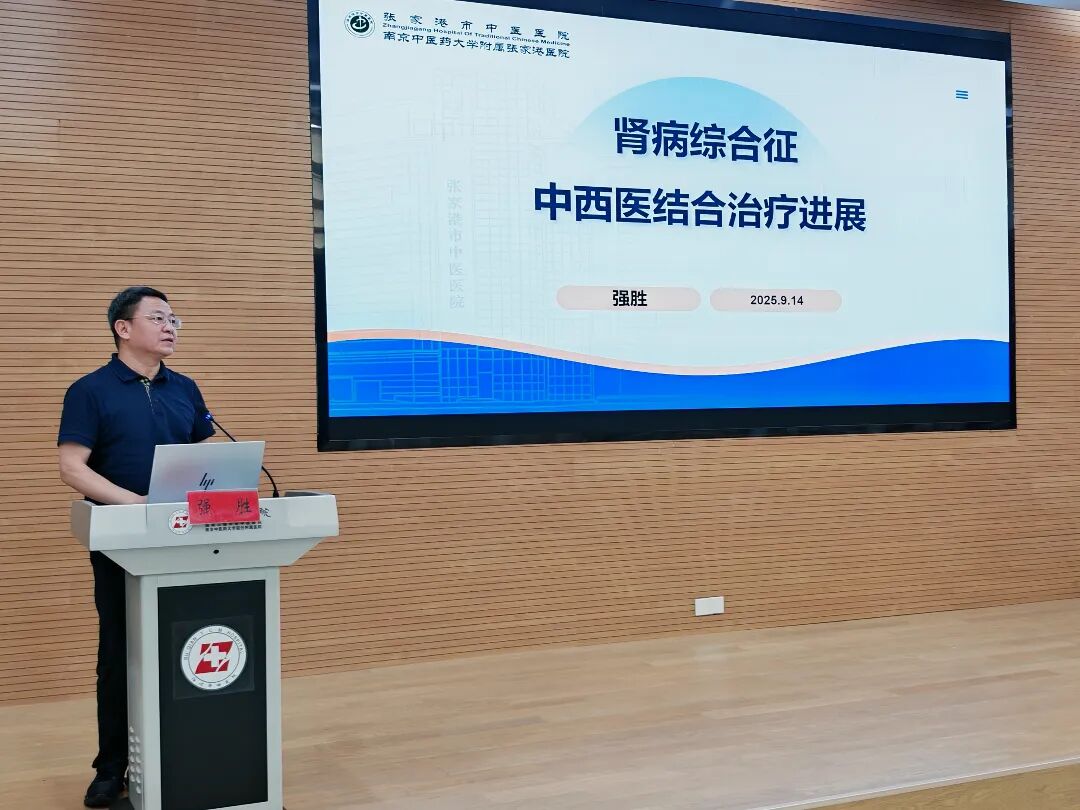 多位省内各医院知名专家学者、学科领军人物都作了精彩的专题报告。江苏省中医院孙伟教授分享了《基于护肾延衰理念“肾虚湿瘀”病机的传承创新——中西医结合延缓CKD3-5期进展的临床疗效观察》,张家港市中医医院强胜主任分享了《肾病综合征的中西医治疗》,宿迁市中医院李志彬主任分享了《老年淋证诊治经验分享》,张家港市中医医院杜珍芳主任分享了《江苏省名中医翟惟凯治肾学术经验与研究》,肾内科王家顺主任分享了《不宁腿综合征中医治疗初探》,彭雪主任分享了《老年肾脏病诊治概要》,蔡连香主管护师分享了《中医适宜技术应用系列-耳穴疗法》。