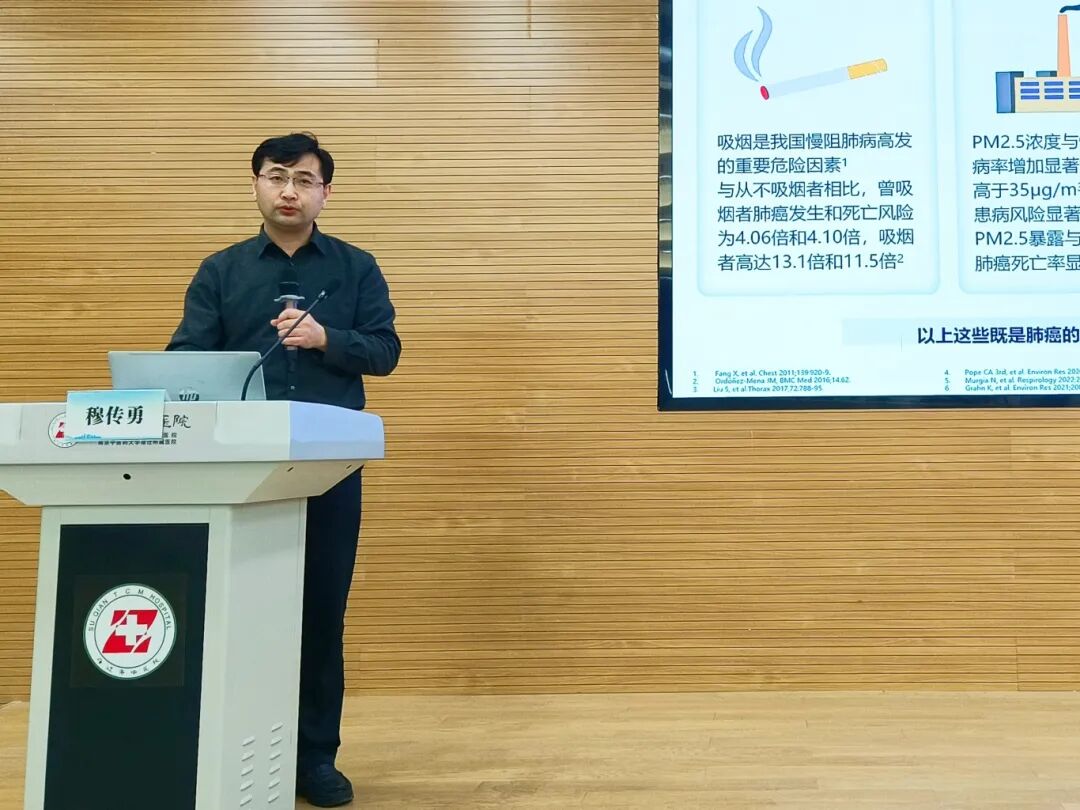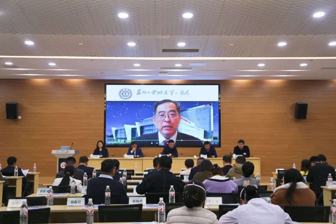 宿迁市卫生健康委员会党委副书记徐健、江苏省医学会呼吸病学分会名誉主委、呼吸内镜学组组长黄建安教授、江苏省医学会呼吸病学分会主委、肺癌学组组长宋勇教授、宿迁市医学会呼吸专业委员会主委冯步山教授分别致辞。