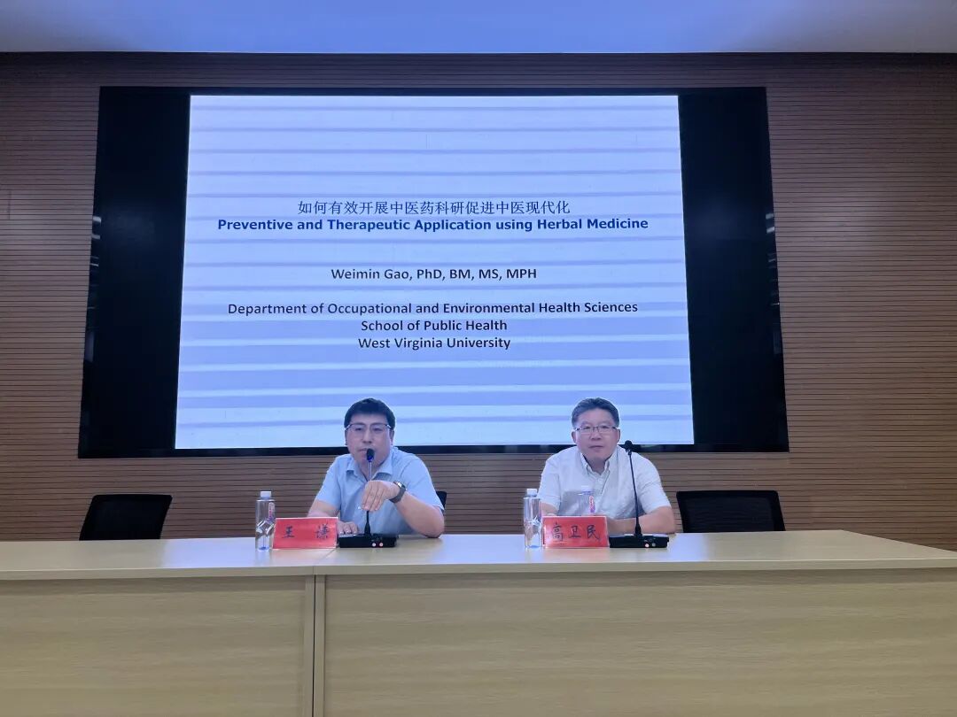 高卫民教授首先介绍了西弗吉尼亚大学开展中药活性成分治疗肥胖、糖尿病、癌症等的课题研究情况,提出“传统中药提取物或单体化合物的吸收利用率低,需要开发剂型提高药物吸收,并提出组方、验方研究的重要性”。