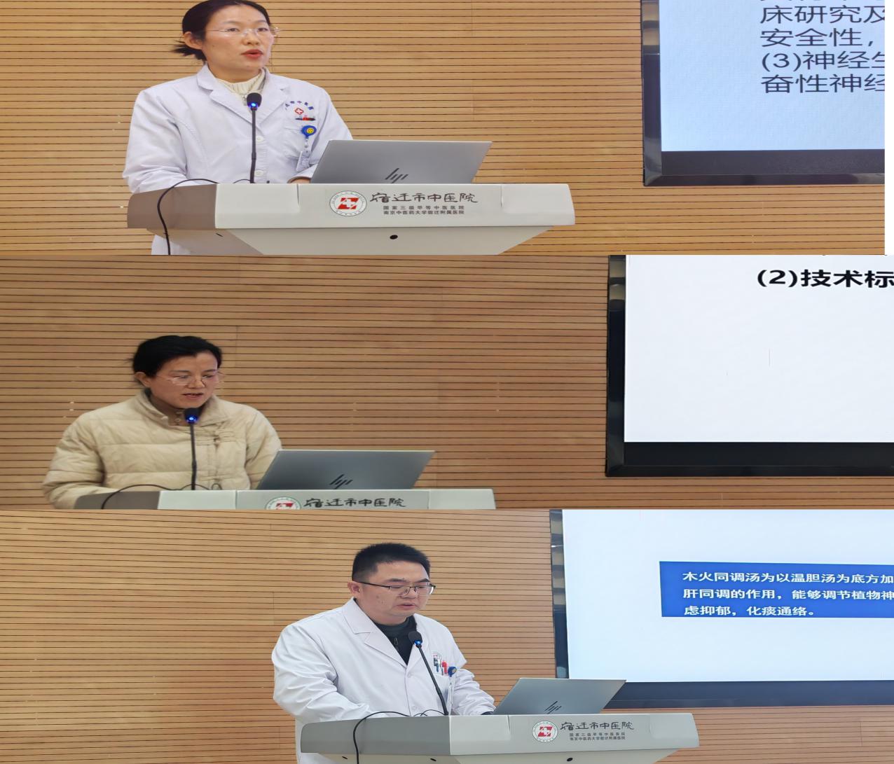 验收过程中,宿迁市中医院耿雨作、王敏、王红胜三位项目申报人依次登台,围绕项目研究背景、实施过程及应用价值等核心内容作结题汇报,全面展示项目研究成效,积极配合完成验收评审相关工作。