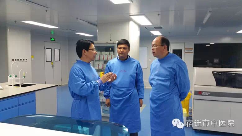 评审组组长顾月星(盐城市中医院副院长)在王建彬院长陪同下参观检验科和手术室